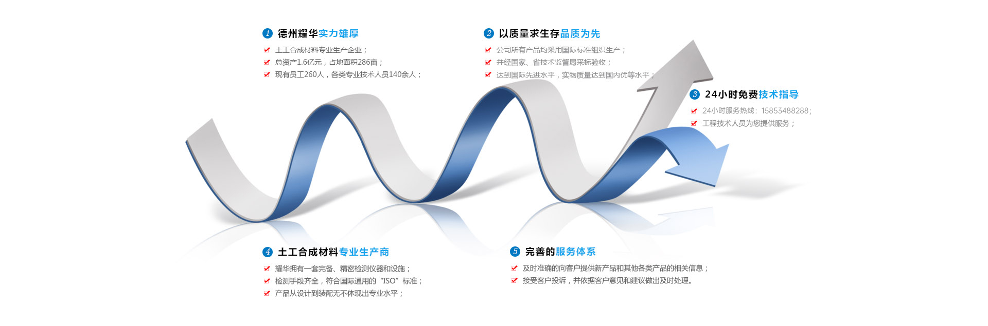 德州耀華土工材料有限公司是目前全國(guó)較大、品種其全的土工合成材料專業(yè)生產(chǎn)企業(yè),主要產(chǎn)品有復(fù)合土工膜、HDPE土工膜、長(zhǎng)絲土工布、防草布、防水土工布、水庫(kù)防滲膜、防水板、生態(tài)袋、三維復(fù)合排水網(wǎng)、長(zhǎng)絲機(jī)織土工布、EVA土工膜、無(wú)紡布、6.2m寬幅短纖針刺無(wú)紡布、6.0m寬幅土工膜、復(fù)合防水板、6.0m幅寬長(zhǎng)絲土布等。本公司有年產(chǎn)萬(wàn)噸滌(丙)短纖維兩用生產(chǎn)線、無(wú)紡布、PE防水板、復(fù)合膜等10余條生產(chǎn)線,工藝技術(shù)先進(jìn)。HDPE土工膜、復(fù)合土工膜價(jià)格低廉...【更多】